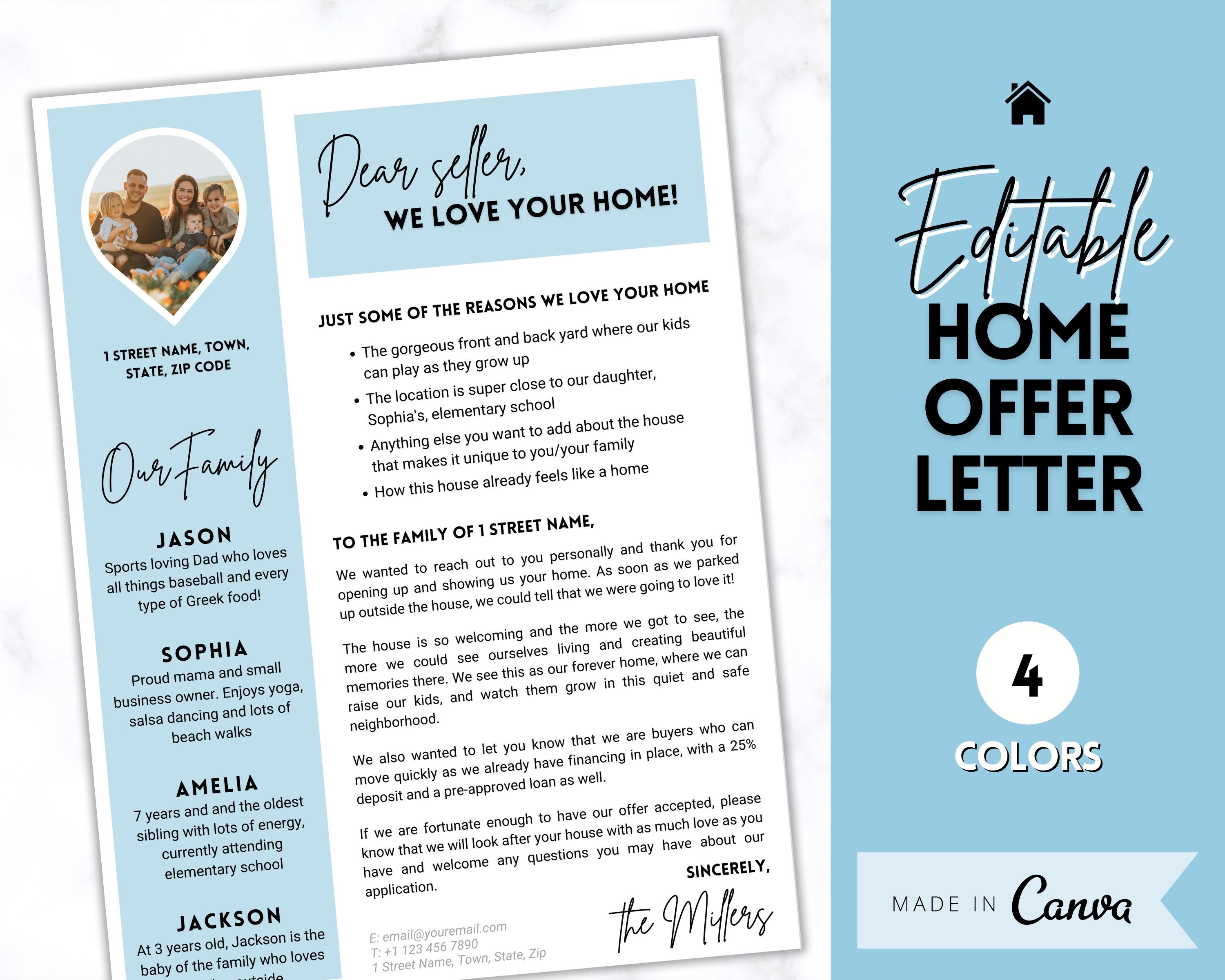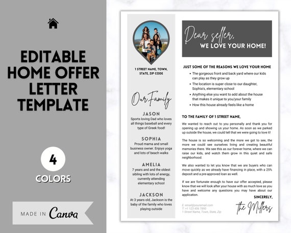 Editable Home Offer Letter Template Letter To Seller Buyer Etsy